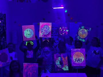 Get ready to illuminate canvases with vibrant glow-in-the-dark paint under the enchanting glow of black light. It's an unforgettable experience that adds a splash of color to the birthday festivities! Recommended for ages 7+.
